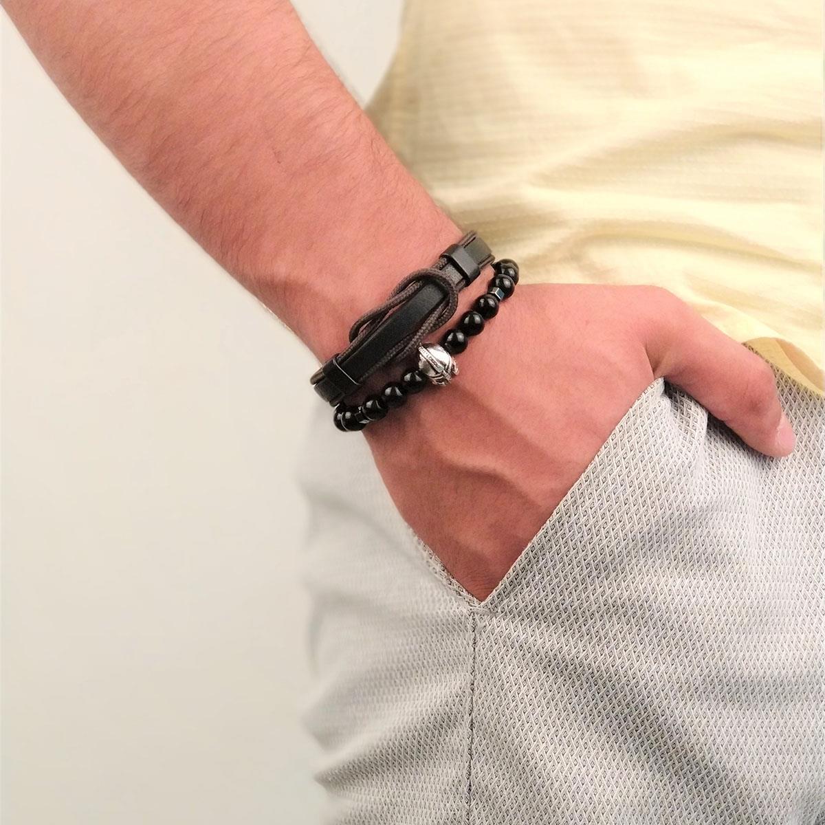 BileklikJTKB19003 JANTİ 2 Lİ KOMBİN DOĞAL TAŞ ve DERİ BİLEKLİK MİĞFER FİGÜRLÜJanti