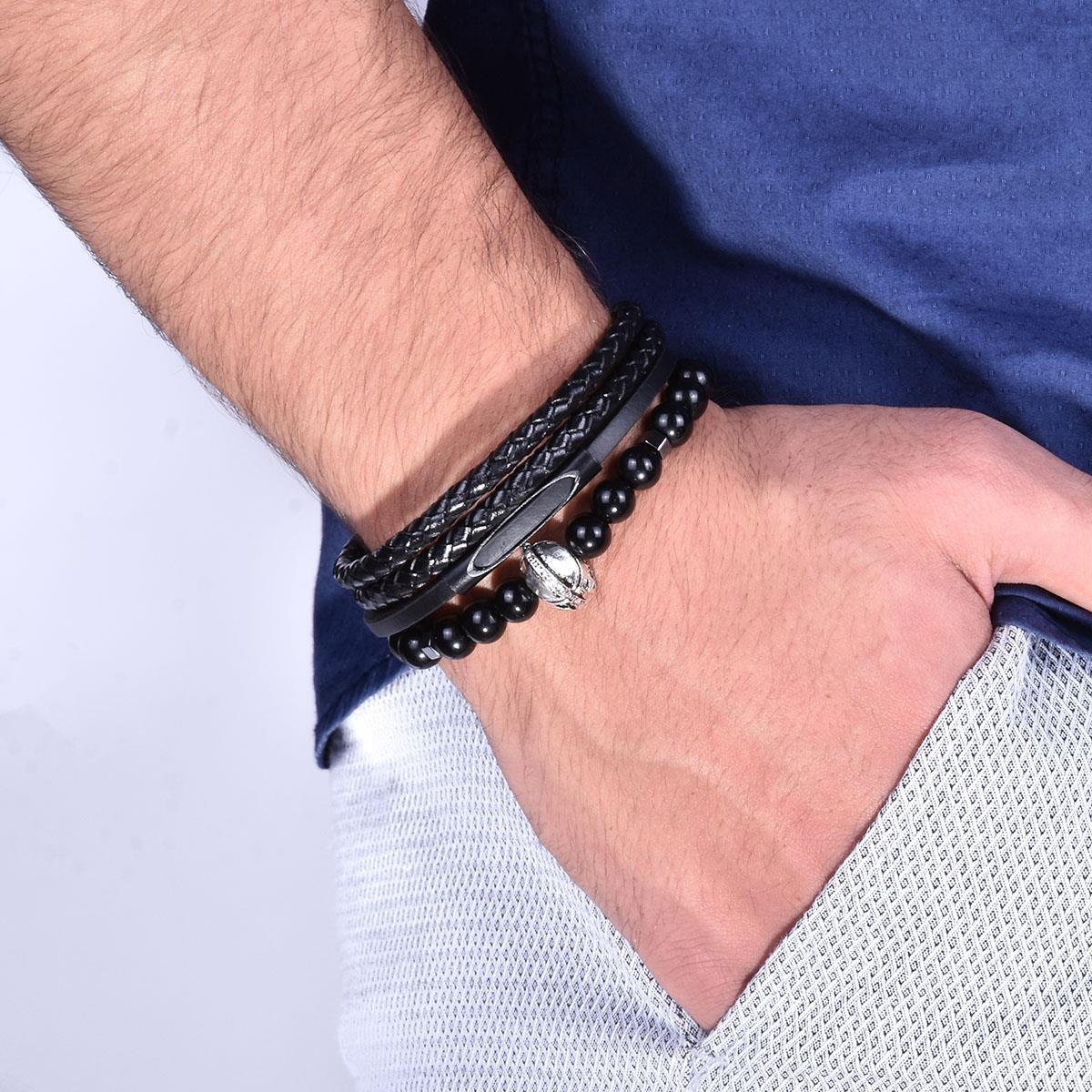 * Janti Marka Özel Tasarım Kombin Bileklik * Bu Şık Ürün Janti Hediye Kutusu ile Gönderilecektir. * Bileklikler Doğal Cam Oniks ile Deri Malzemelerden Üretilmiştir. * Doğal Cam Bileklik Yükseklik 0.8 cm Uzunluk 20.5 cm * Deri Bileklik Yükseklik 1 cm Uzunluk 20.5 cm * Bilek Çevresi 17-19 cm Olan Kişiye Uygun Olur. * Metal Aparat ve Kapama Malzemeler ipc Kaplamadı * Bu Ürün Orijinal Malzemeler Kullanılarak Türkiye'de El İşçiliği İle Üretilmiştir. * Ürünün Uzun Ömürlü Olması ve Özelliğinin Bozulmaması için Deniz, Havuz, Krem, Parfüm, Alkol, Çamaşır Suyu vb. kimyasal maddelerle temasından kaçınılmalıdır.