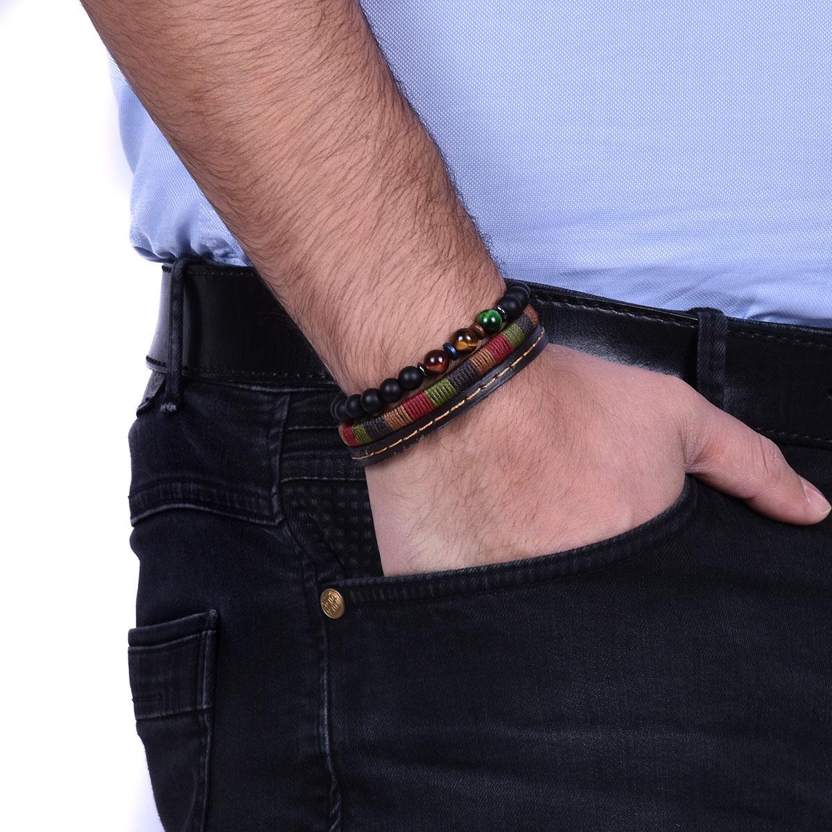 * Janti Marka Özel Tasarım Kombin Bileklik * Bu Şık Ürün Janti Hediye Kutusu ile Gönderilecektir. * Bileklikler Doğal Taş ve Deri Malzemelerden Üretilmiştir. * Esnek Bileklik Kırmızı+Kahverengi+Yeşil Kaplangözü ve Hematit Doğal Taş ile Oniks Malzemedendir. * Deri Bileklik Yükseklik 1 cm Uzunluk 20.5 cm * Doğal Taş Esnek Bileklik Yükseklik 0.8 cm Uzunluk 20.5 cm * Bilek Çevresi 17-19 cm Olan Kişiye Uygun Olur. * Bu Ürün Orijinal Malzemeler Kullanılarak Türkiye'de El İşçiliği İle Üretilmiştir. * Ürünün Uzun Ömürlü Olması ve Özelliğinin Bozulmaması için Deniz, Havuz, Krem, Parfüm, Alkol, Çamaşır Suyu vb. kimyasal maddelerle temasından kaçınılmalıdır.