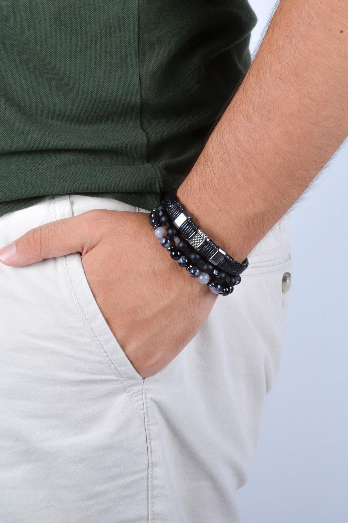 BileklikJTKB20023 JANTİ DOĞAL TAŞ ve DERİ KOMBİN BİLEKLİKJanti