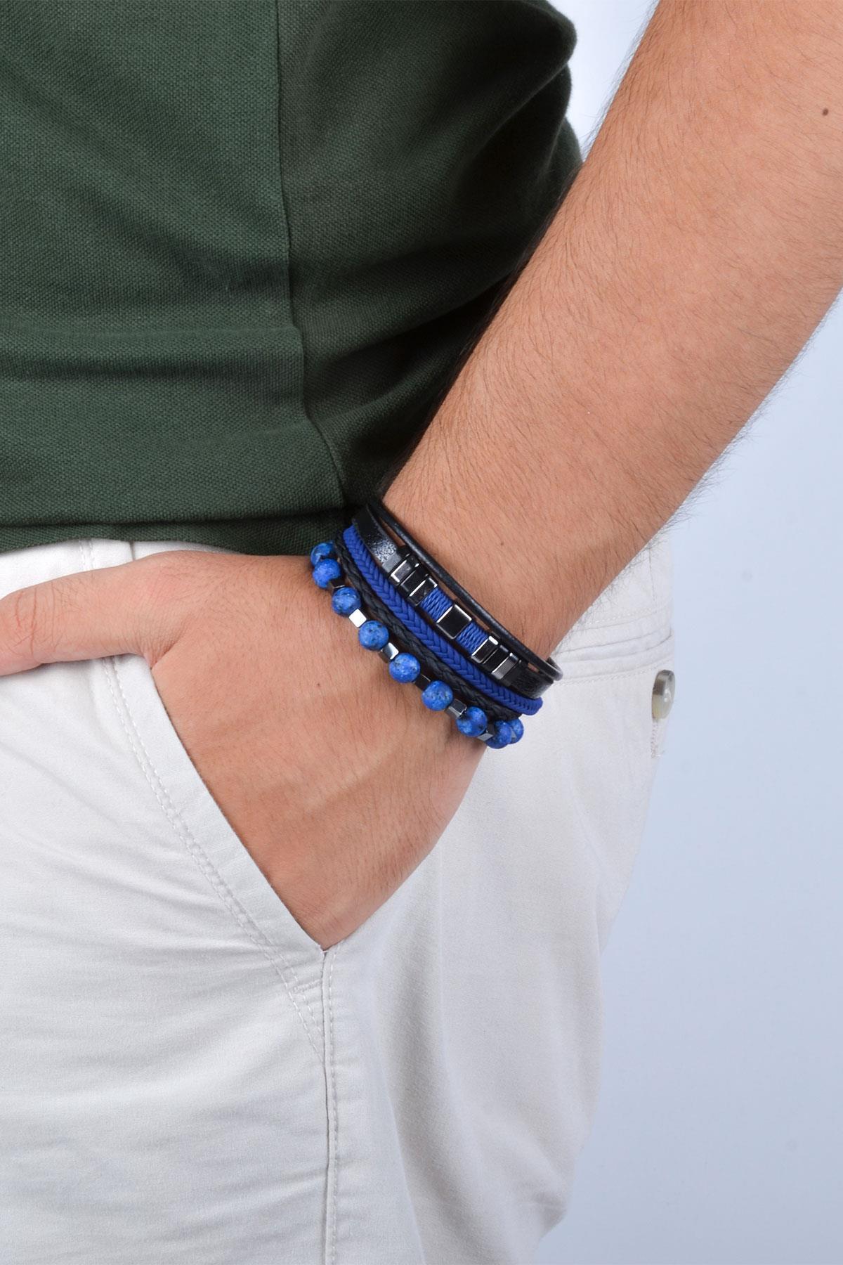 BileklikJTKB20043 JANTİ DOĞAL TAŞ ve DERİ KOMBİN BİLEKLİKJanti