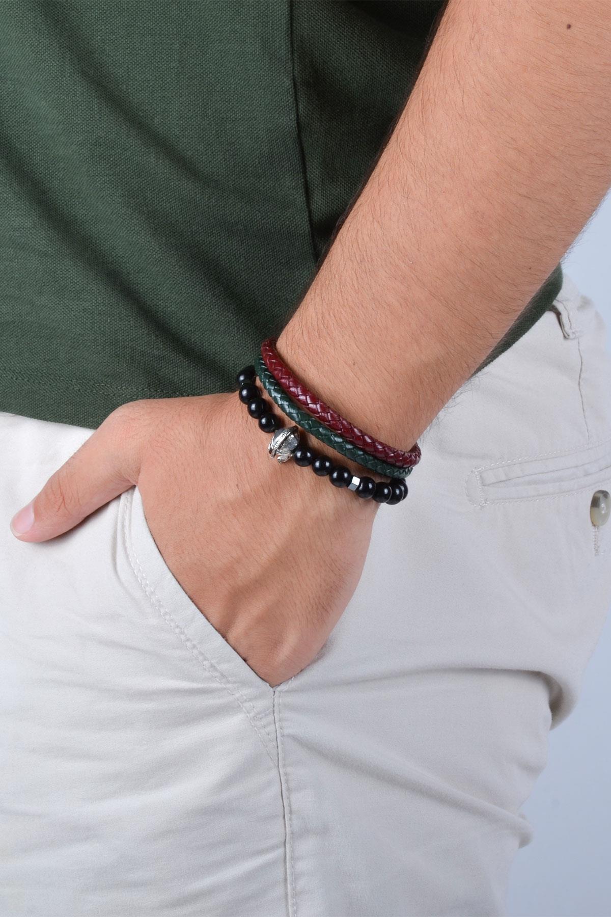 * Janti Marka Özel Tasarım Kombin Bileklik * Doğal Taş Esnek Bileklik * Doğal taş esnek bileklik yükseklik 8 mm Uzunluk 20.5 cm * Bilek çevresi 17-19 cm olan kişiye uygun olur. * Deri bileklik yükseklik 12 mm Uzunluk 20.5 cm * Bilek çevresi 17-19 cm olan kişiye uygun olur. * Deri bileklik Alaşımlı Metal Malzeme Kanca Kapama * Ürün özelliğinin bozulmaması için; Deniz, Havuz, Krem, Parfüm, Alkol, Çamaşır Suyu vb. kimyasal maddelerle temasından kaçınılmalıdır. * Orijinal Malzemeler Kullanılarak Türkiye'de El İşçiliği İle Üretilmiştir.