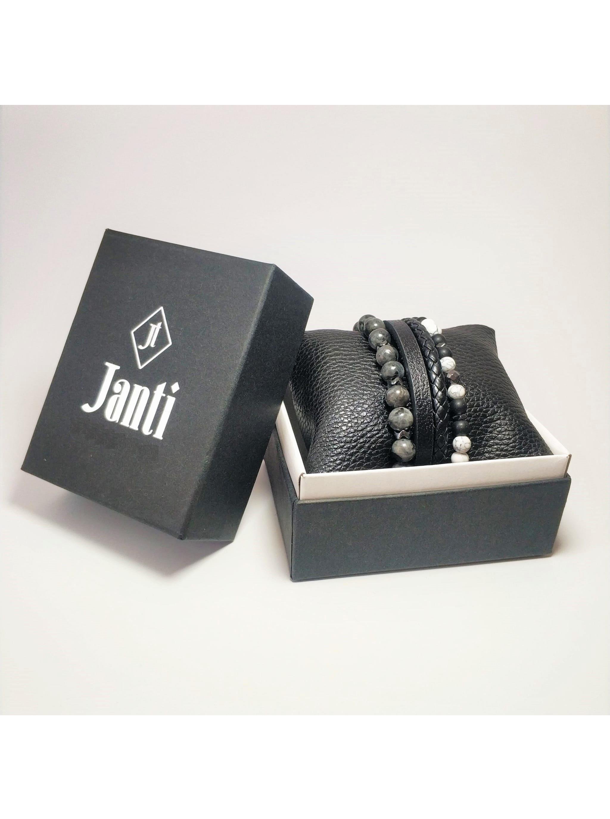 JTKB22008 Janti 3'lü Kombin Bileklik Hakiki Deri Orijinal Doğaltaş Garantili Kutulu (JTKB22008)