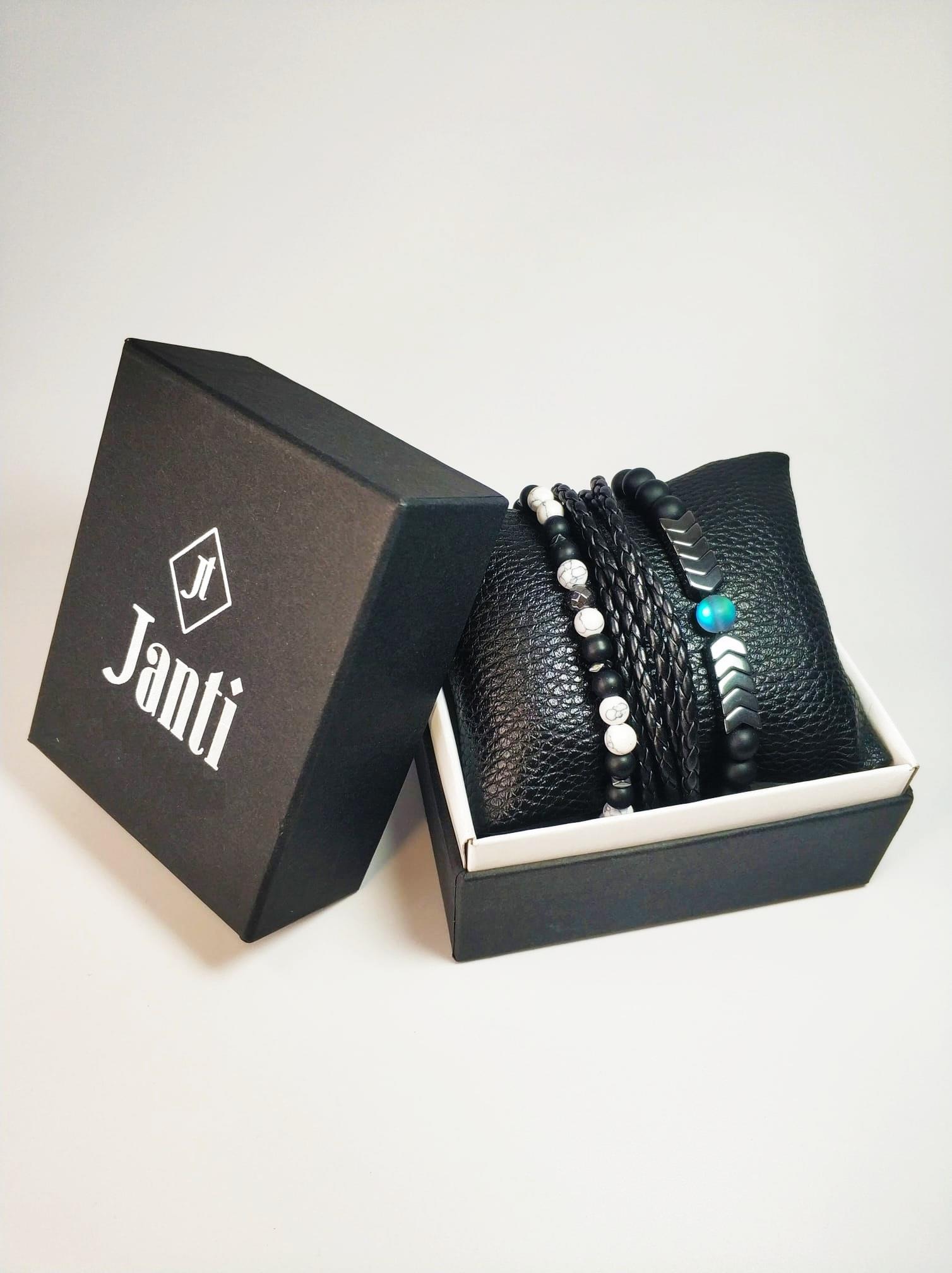 JTKB22015 Janti 3'lü Kombin Bileklik Deri Orijinal Lav, Hematit, Havlit, Kuvars Doğaltaş Garantili Kutulu (JTKB22015)