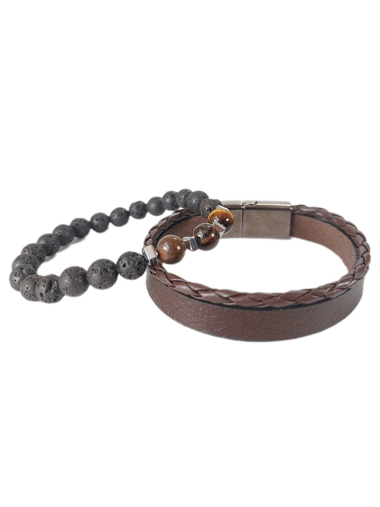 BileklikJTSS22KOB1094 JANTİ HAKİKİ DERİ MIKNATIS KAPAMA KAPLANGÖZÜ HEMATİT LAV DOĞALTAŞ KOMBİN BİLEKLİK KUTULUJanti