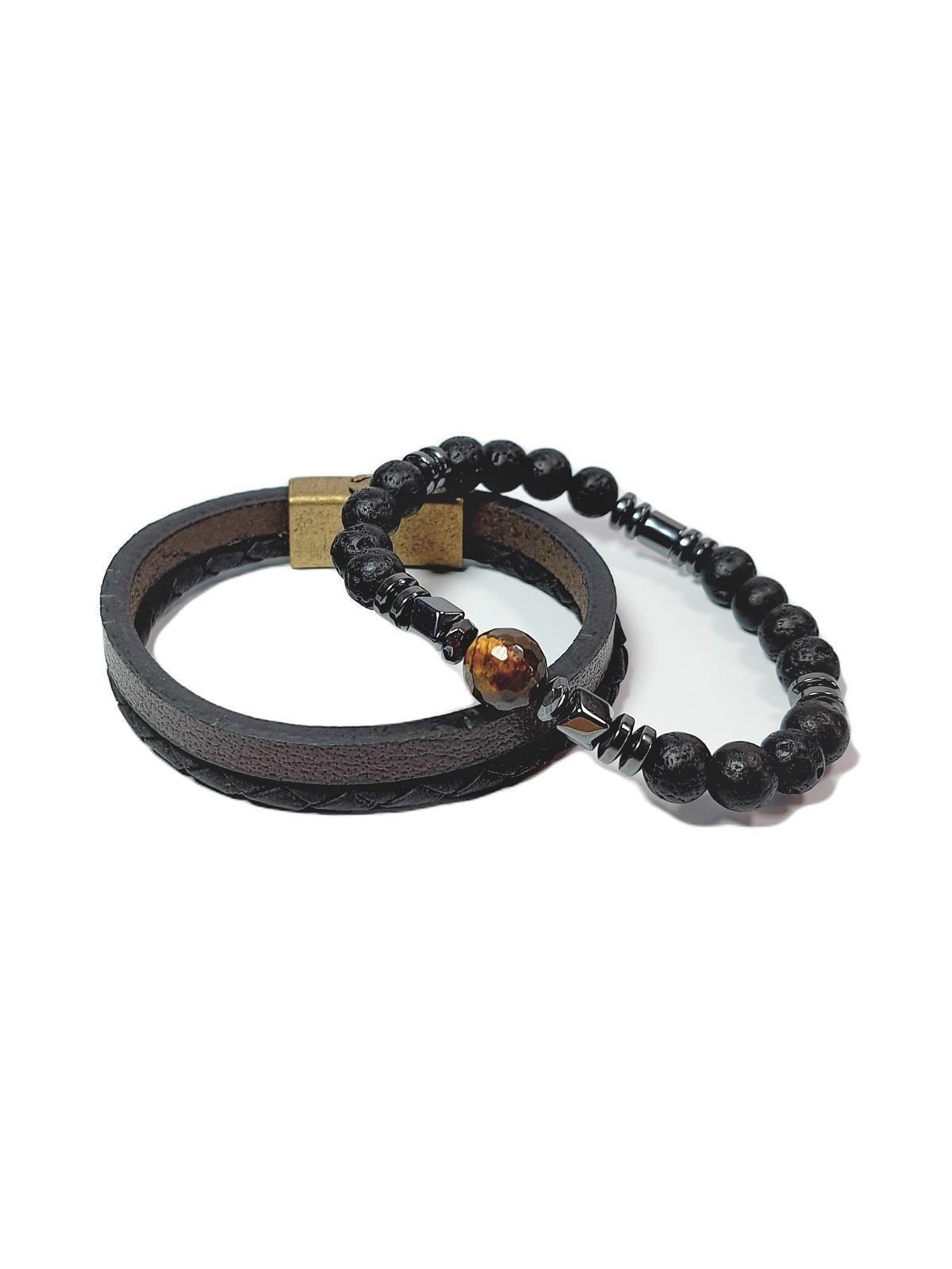 BileklikJTSS23KOB1320 JANTİ 2'Lİ KOMBİN BİLEKLİK KAPLANGÖZÜ HEMATİT LAV DOĞALTAŞ ve DERİ KUTULU GARANTİLİJanti
