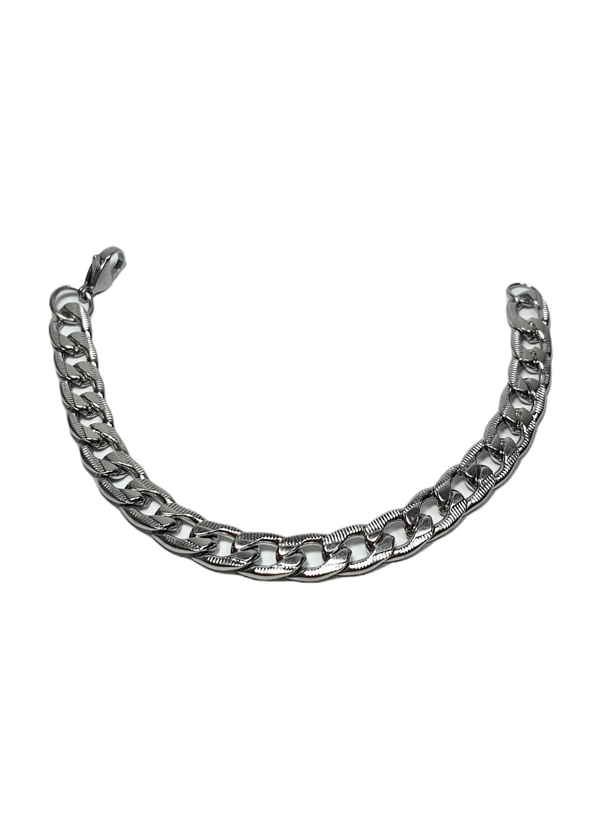 JTSS25ÇEB1484 GURME EZME DESEN MODEL GÜMÜŞ GRİ RENK ZİNCİR PASLANMAZ RENK ATMAZ 316L JANTİ ÇELİK BİLEKLİK (JTSS25ÇEB1484)