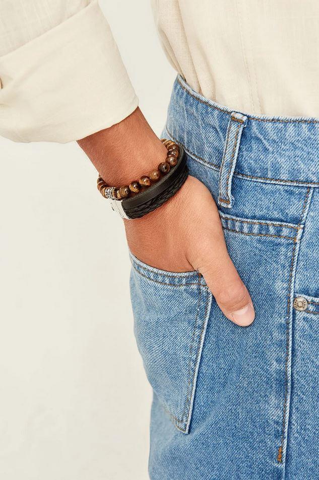 BileklikJTSS23KOB1164 ORİJİNAL KAPLANGÖZÜ DOĞALTAŞ ve HAKİKİ DERİ KOMBİN BİLEKLİK GARANTİLİ KUTULUJanti